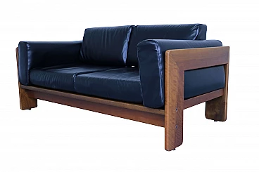 Divano due posti modello Bastiano, disegnato da Afra e Tobia Scarpa per Gavina. Struttura in legno di noce e sedute rivestite in similpelle.