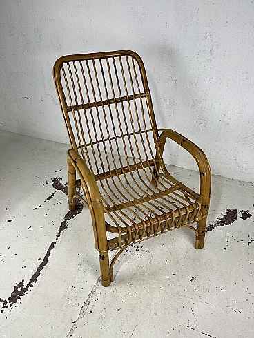 Poltrona in vimini e rattan di Bonacina, anni '60