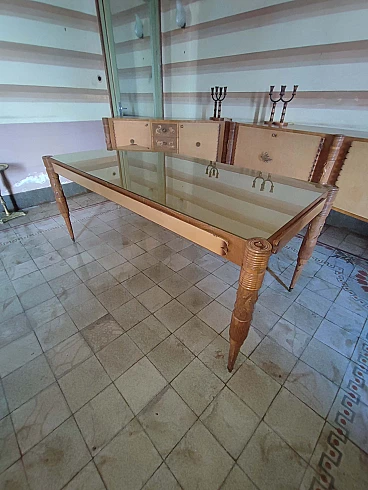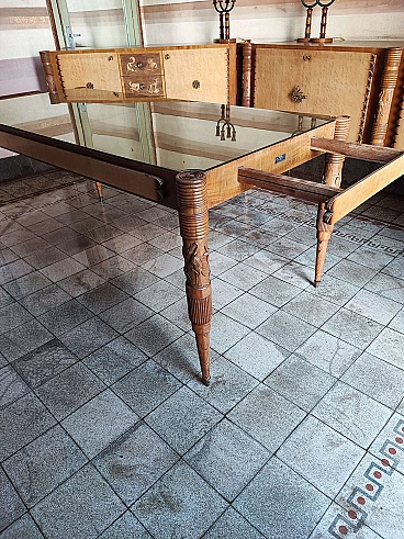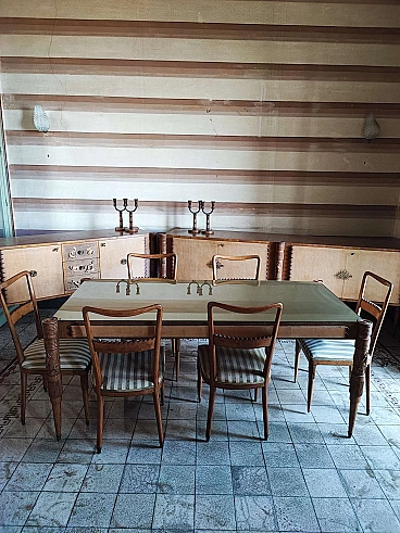 Tavolo in legno e vetro di Pier Luigi Colli con sedie, anni '50