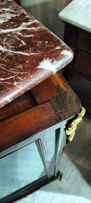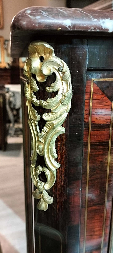 Vetrina Napoleone III in palissandro con decori in bronzo, metà '800