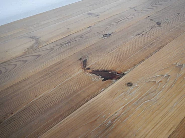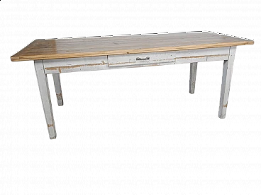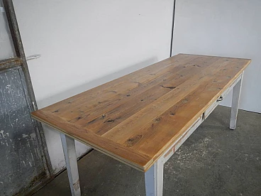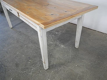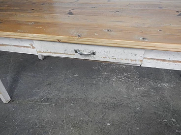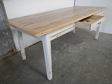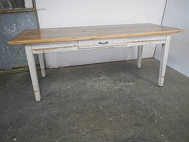 Tavolo con cassetto in larice e abete verniciato bianco, anni '70