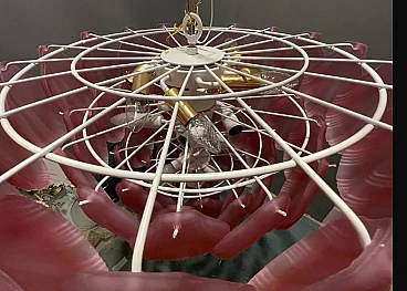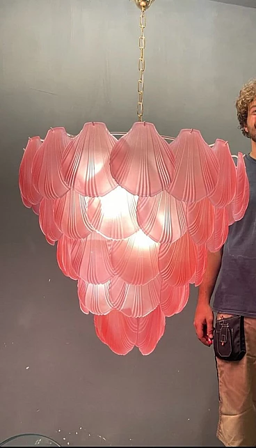 Lampadario a conchiglie in vetro satinato rosa, anni '80