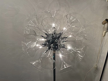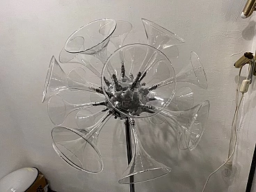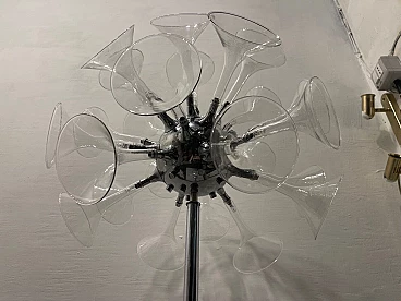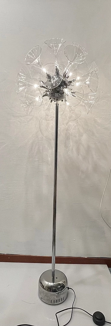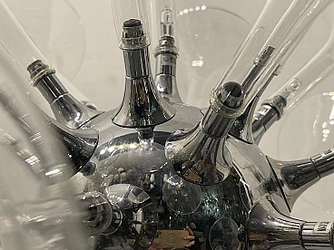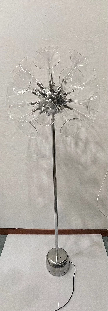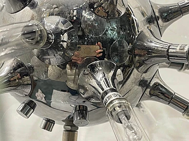 Lampada da terra Sputnik in metallo cromato e cristallo, anni '80