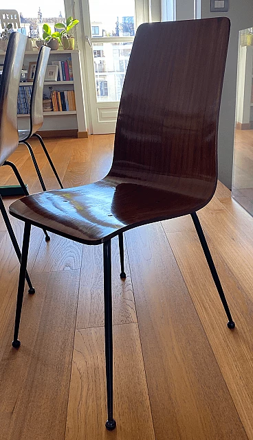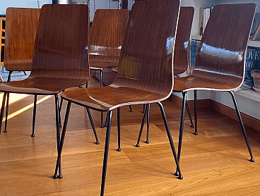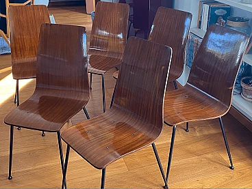6 Sedie in legno curvato con struttura in metallo laccato di Carlo Ratti, anni '50