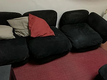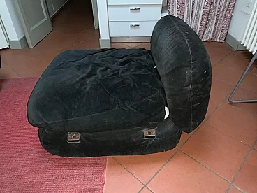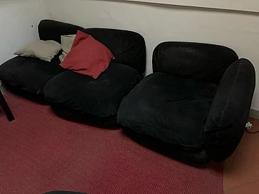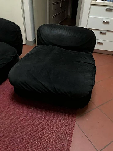 3 Poltrone Delfa in cuoio scamosciato nero, anni '80