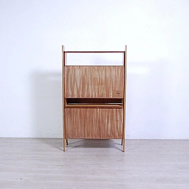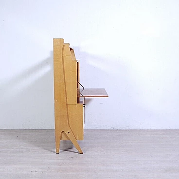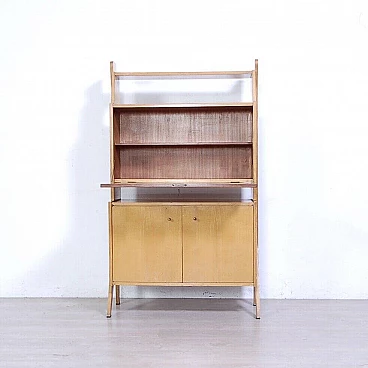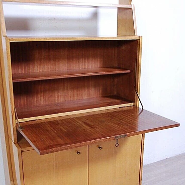 Libreria con anta a ribalta in legno impiallacciato, anni '60