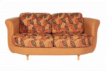 Big Mama two-seater sofa by Moroso, design Massimo Iosa Ghini. Made of differentiated density polyurethane foam and polyester fibre with internal wooden frame. Beech feet. Seat cushions are in differentiated density polyurethane foam and polyester fibre. Back cushions are in goose down. The upholstery is in excellent condition, very special and rare is the colour with floral motifs. The sofa is orange in colour with the cushions embroidered with leaves in three different shades: orange, red and gold. Completely removable covers.
