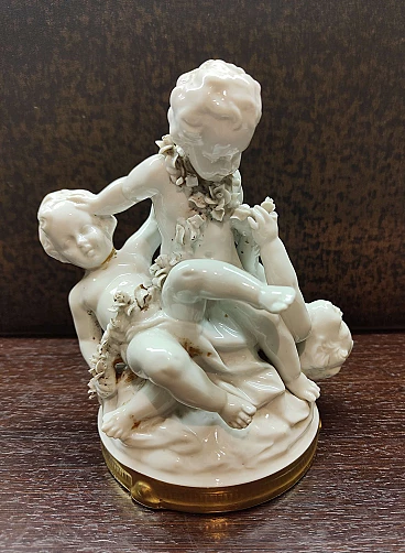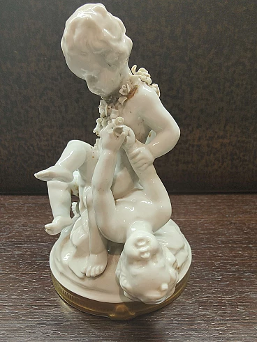 Gruppi di amorini, coppia di sculture in porcellana di Capodimonte, anni '50