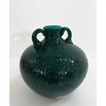 Vaso Biansato in vetro pulegoso verde di Murano di Seguso, anni '30
