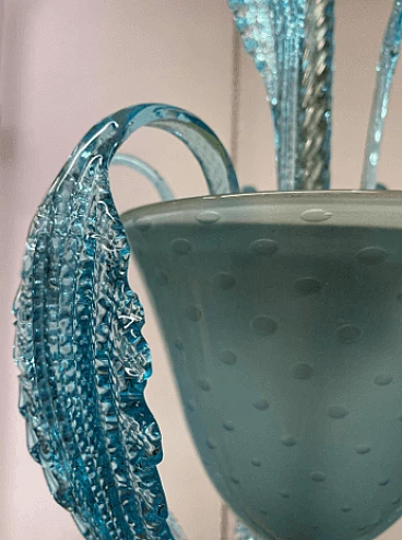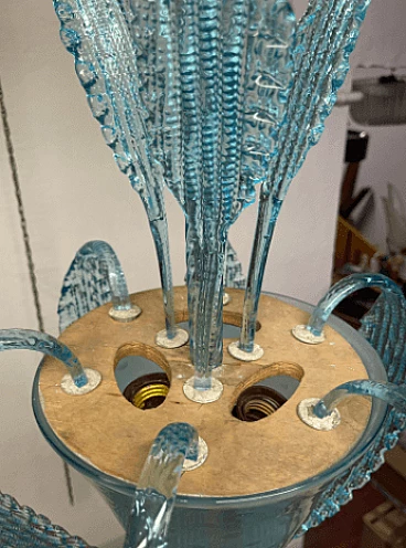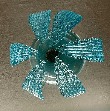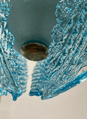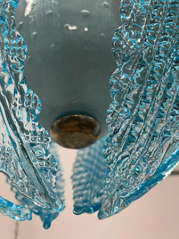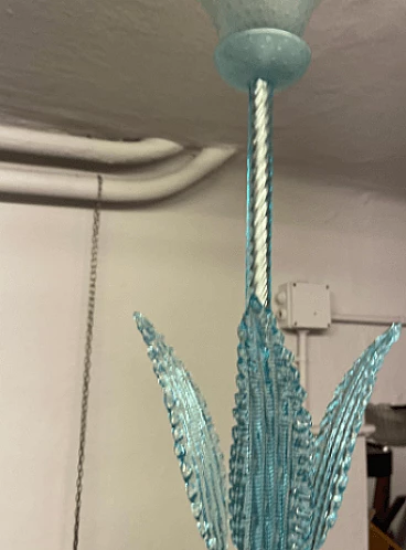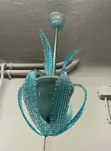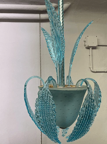 Lampadario in vetro di Murano azzurro attribuito a Ercole Barovier, anni '40