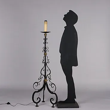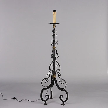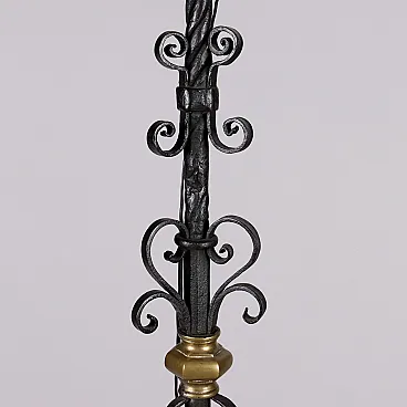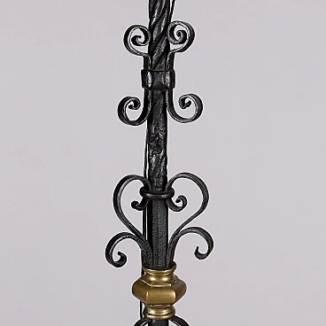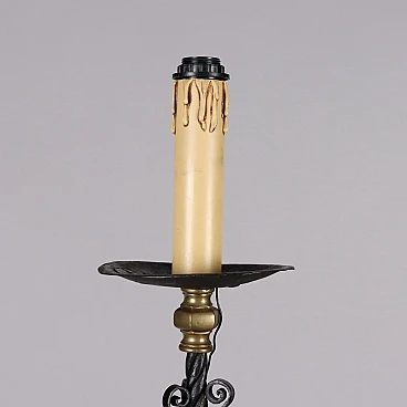 Candeliere in ferro battuto con inserti in bronzo, '800