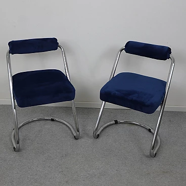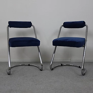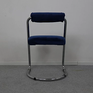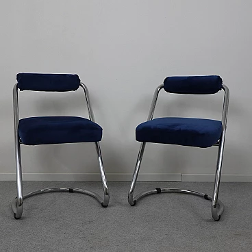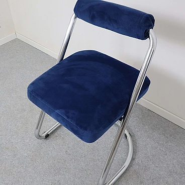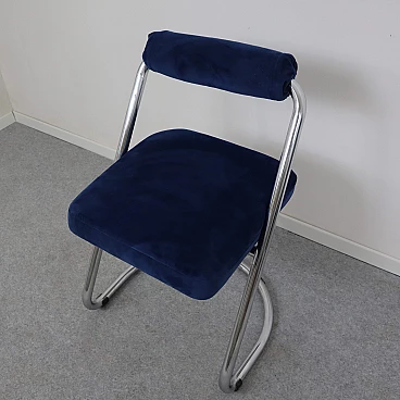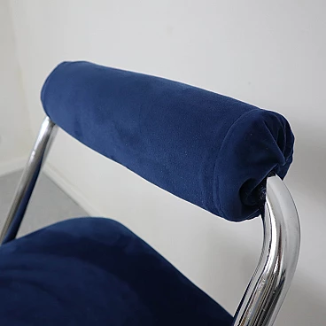 Le sedie in acciaio cromato degli anni '70 con rivestimento in velluto blu e design di Willy Rizzo sono un esempio eccezionale di mobili vintage di alta qualità. Willy Rizzo è un famoso designer italiano noto per le sue creazioni degli anni '70. Queste sedie portano la sua firma e riflettono lo stile e l'eleganza distintivi del periodo. L'uso dell'acciaio cromato per la struttura conferisce alle sedie una robustezza e una durabilità notevoli. Il velluto blu utilizzato per il rivestimento è lussuoso e conferisce alle sedie un aspetto sofisticato. Le sedie sono progettate per offrire comfort durante l'uso. La combinazione del tessuto in velluto e della struttura in acciaio cromato crea un contrasto estetico affascinante. Queste sedie catturano perfettamente lo spirito degli anni '70, con la loro estetica retro e l'uso di materiali e colori iconici di quell'epoca. Grazie al loro design elegante e alla combinazione di materiali di alta qualità, queste sedie si adattano bene a una varietà di ambienti, tra cui sale da pranzo, studi o uffici. Poiché sono prodotte negli anni '70, queste sedie rappresentano un pezzo storico di design d'interni e sono altamente collezionabili per gli appassionati di arredamento vintage. In sintesi, queste sedie in acciaio cromato con rivestimento in velluto blu di design Willy Rizzo rappresentano un'eccellente combinazione di comfort, stile e durabilità. Sono un'autentica testimonianza del design d'interni degli anni '70 e possono aggiungere un tocco di eleganza retrò a qualsiasi spazio.