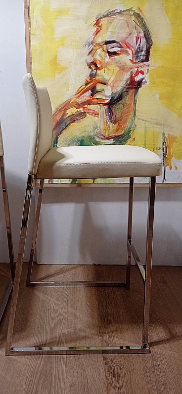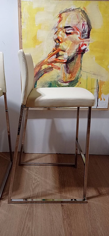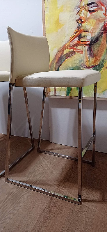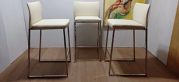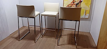 3 Sgabelli Brand 912 in pelle martellata beige di Martin Ballendat per Tonon