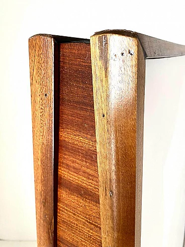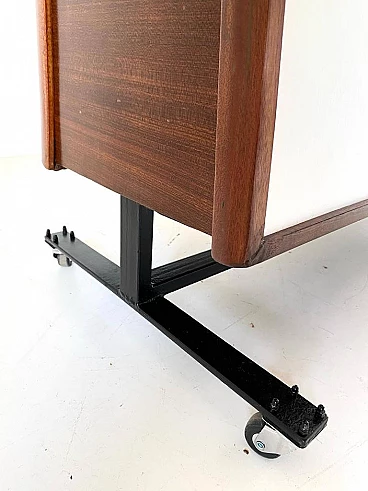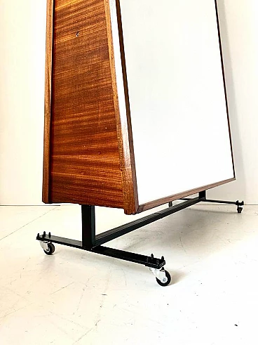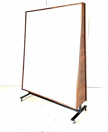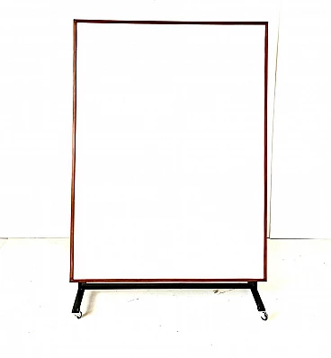 Separé a rotelle vintage in legno multistrato. Prodotto in Italia negli anni '50. Due pannelli di compensato bianco assemblati su un telaio in acciaio con cornice e pannelli laterali in legno impiallacciato in teak.