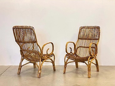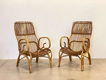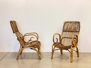 Coppia di poltrone in bambù, anni '70