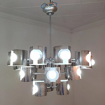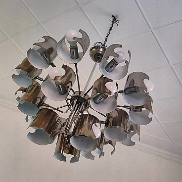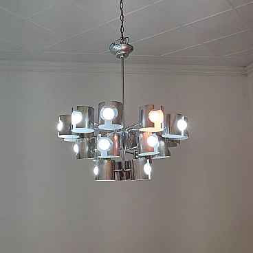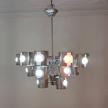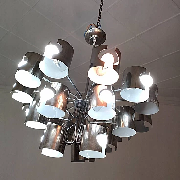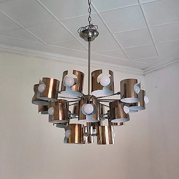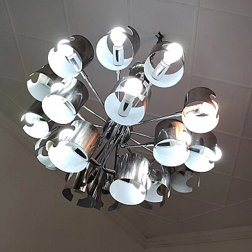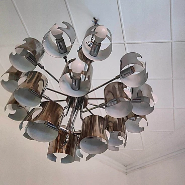 Lampadario a ventuno luci in cromo e bianco, anni '70