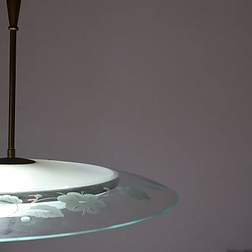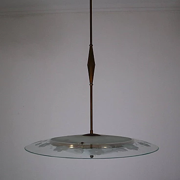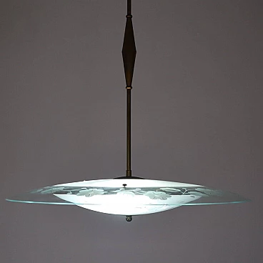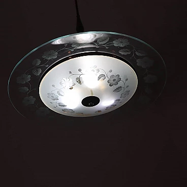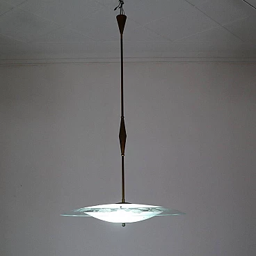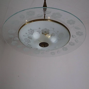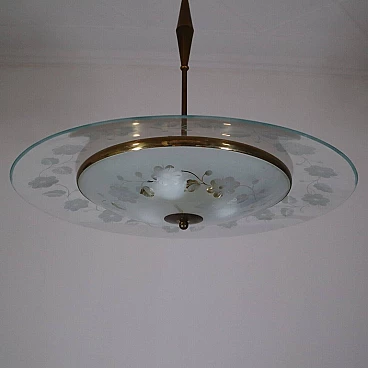 Lampadario a disco volante con doppio vetro in stile Fontana Arte di Pietro Chiesa, anni '50