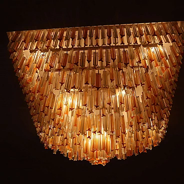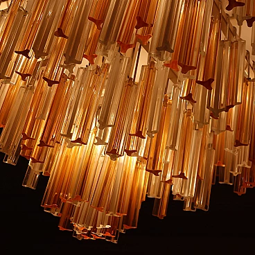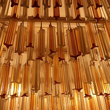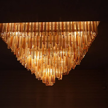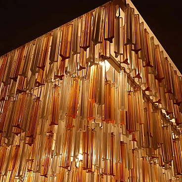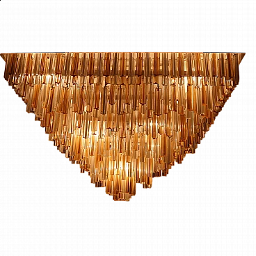 Illumina il tuo spazio con un'opera d'arte luminosa: il maestoso lampadario Venini con trilobi in Murano bilocore. Questa straordinaria creazione cattura lo sguardo con la sua presenza imponente, trasformando l'ambiente in una sinfonia di luce e colore. Con oltre 750 pezzi il lampadario si estende con eleganza su una struttura di 130x130x80 cm, creando un'impressione di grandiosità e raffinatezza. Ogni trilobo in Murano, ambrato e trasparente con un'anima bianca, è una piccola opera d'arte in vetro soffiato, plasmato con maestria artigianale. I toni ambrati aggiungono calore e una luce avvolgente, mentre la trasparenza permette alla luce di danzare delicatamente attraverso ogni singolo elemento. L'anima bianca al centro di ciascun trilobo crea un affascinante contrasto, enfatizzando la complessità e la bellezza di ogni dettaglio. Questo lampadario Venini non è solo una fonte di luce, ma un'esperienza visiva. La sua immensità e maestosità lo rendono perfetto per ambienti ampi e sontuosi, come sale da pranzo o spazi open space. La qualità e l'artigianalità di ogni elemento riflettono l'eredità di Murano nella produzione di vetro di alta qualità.