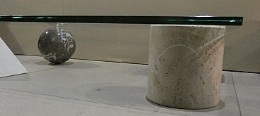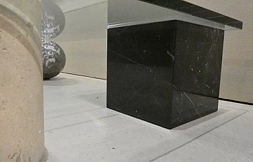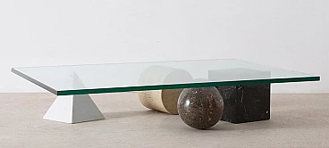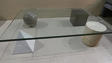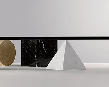 Metafora #1 - Tavolino ideato negli Stati Uniti da Lella e Massimo Vignelli e realizzato in Italia da Maurizio Casigliani, questo sistema di elementi (un piano in vetro e quattro supporti in marmo a geometria euclidea) da assemblare in un tavolo basso fu presentato per la prima volta al pubblico in occasione del Macef autunnale e, subito dopo al Salone del Mobile di Milano nel settembre 1979. Immortalato sulla copertina di "Casa Vogue" nel novembre dello stesso anno, diventa presto un best seller del nascente marchio Casigliani dedicato agli oggetti d'arredo, di cui Metafora "anticipa e contiene già alcuni caratteri costanti nella produzione" (Pier Carlo Santini). In particolare per l'esplicita ricerca di "soluzioni non troppo precarie dal punto di vista del gusto" volte a "valorizzare" le proprietà del marmo come "materiale durevole per eccellenza" (Pier Carlo Santini). I quattro solidi, ben visibili sotto il piano di vetro, sono come pezzi di un gioco spiritoso e bizzarro. Elementi in gioco la cui libera disposizione è vincolata unicamente dalla gravità e dalle leggi della statica. Tutti i supporti potrebbero essere realizzati con un'unica qualità di marmo, ma anche con qualità diverse, variamente combinate e combinabili. Le quattro versioni ormai canoniche della Metafora sono: le tre monomateriche in marmo Bianco di Carrara, Nero Marquinia, Travertino, e...