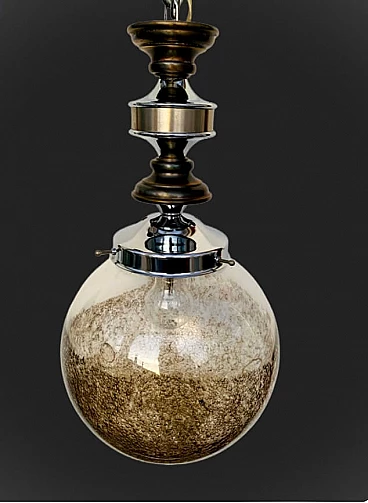 Lampada a sospensione in vetro di Murano pulegoso, anni '70
