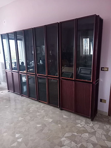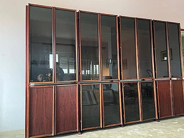 Libreria GS in legno e cristallo di G. Songia per Sormani, anni '70