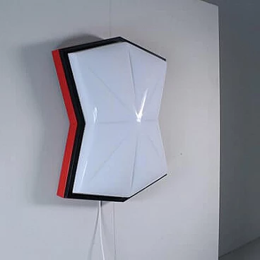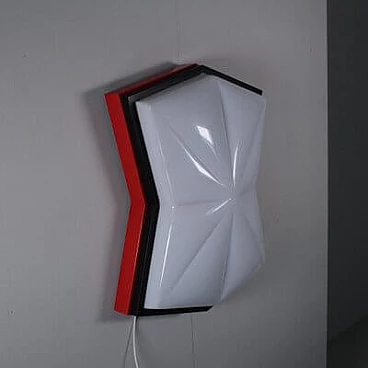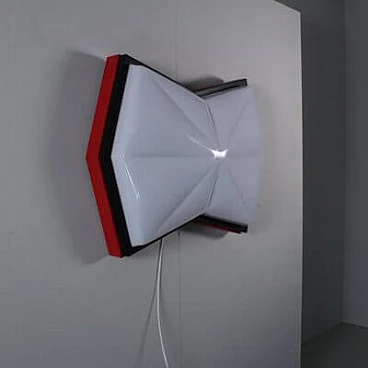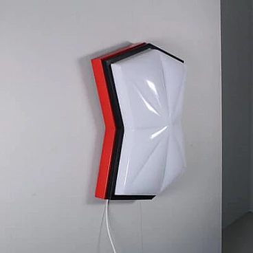 Plafoniera stile Space Age in plastica rossa, nera e bianca, anni '80