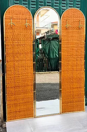 Coppia di appendiabiti e specchio in bambù e ottone, anni '60