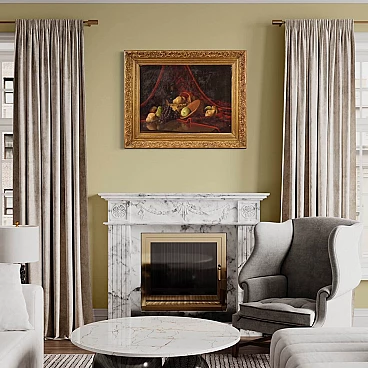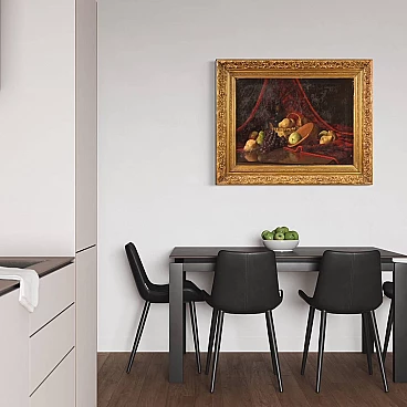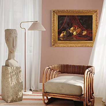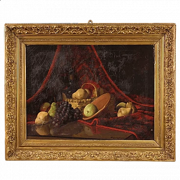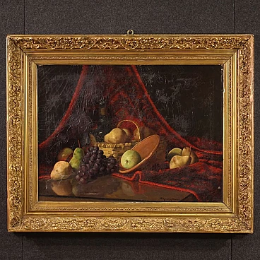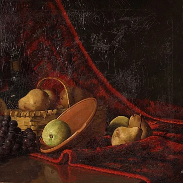 Derk Isselman, natura morta con cesto di frutta, dipinto a olio su tela, 1917