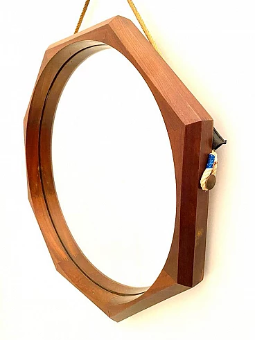 Specchio ottagonale di Campo & Graffi, anni '60. Cornice in massello di teak, corda di sospensione fissata alla cornice grazie a un perno in ottone. Tutte le parti sono originali. Il legno è stato restaurato e rifinito. In ottime condizioni con pochi segni del tempo.