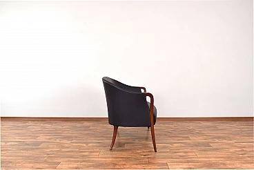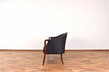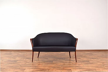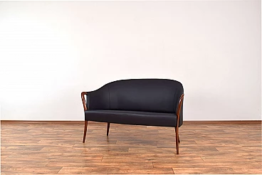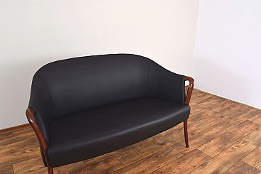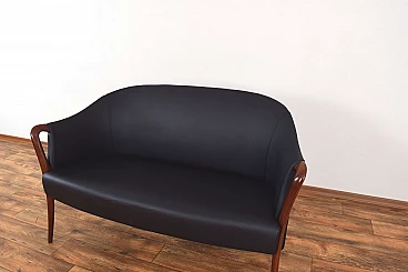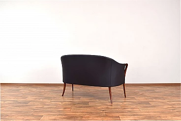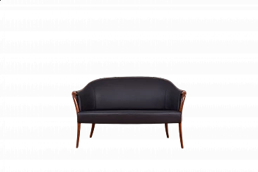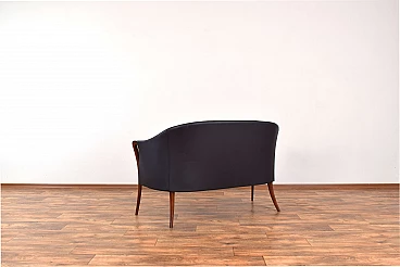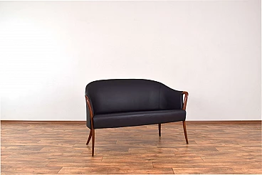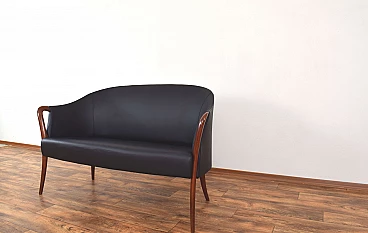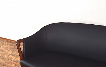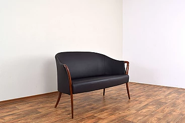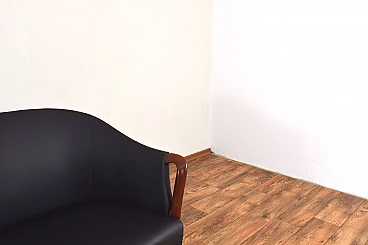 Divano in massello di faggio e pelle nera, anni '60