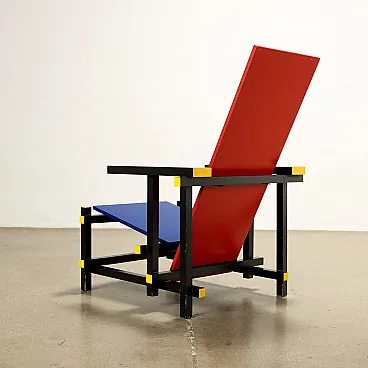 Poltrona nello stile di Gerrit Rietveld Red and Blue, Anni 80