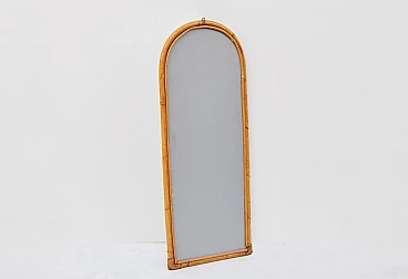 Specchio da parete ad arco in bambù e rattan, anni '60