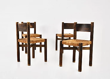 4 Sedie Meribel di Charlotte Perriand per Steph Simon, anni '50