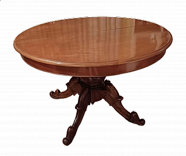 Tavolo rotondo allungabile in legno impiallacciato noce, '800