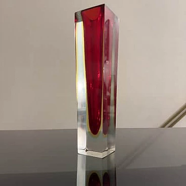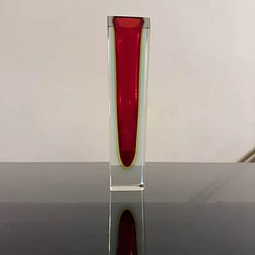 Vaso in vetro Sommerso rosso, giallo e azzurro, anni '70