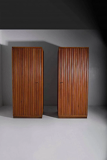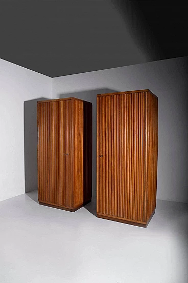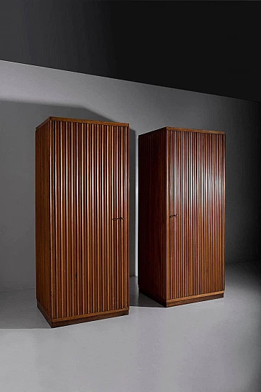 Questi armadi sono più che semplici mobili: sono espressioni senza tempo del design italiano della metà del secolo scorso. Sono versatili e adattabili, si inseriscono perfettamente in qualsiasi arredamento e piacciono agli amanti dell'eleganza e della raffinatezza vintage. Possedere questi armadi è come possedere un pezzo di storia, un legame con un'epoca in cui l'artigianato e il design erano celebrati come forme d'arte. Sono ideali per chi apprezza la bellezza del passato e il fascino duraturo dell'artigianato italiano. In un mondo di mobili prodotti in serie, questi armadi grissinati eleganti ci riportano a un'epoca in cui ogni mobile era un lavoro d'amore e un capolavoro a sé stante. Non sono semplici armadi, ma simboli di un'eleganza senza tempo, testimonianza dello spirito artistico di un'epoca che continua a ispirarci ancora oggi.