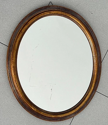 Specchio ovale con cornice in legno intagliato, anni '60