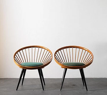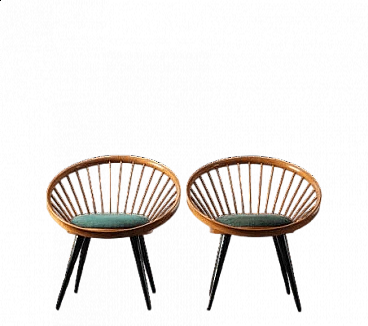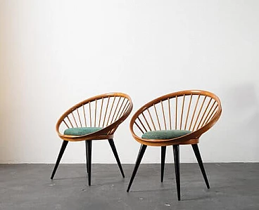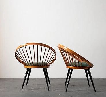 Coppia di poltrone in faggio di Yngve Ekström, anni '60