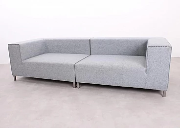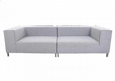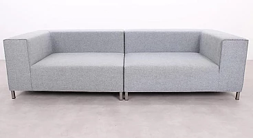 Bellissimo ed elegante divano Atollo, composto da due moduli speculari, con delicate cuciture a vista disegnato da Francesco Rota nel 2017 per Paola Lenti. Eccellenti condizioni, minimi segni d'uso. Con le sue linee pulite e la struttura con piedi cromati, questo divano offre un aspetto senza tempo in qualsiasi ambiente. È possibile vedere una leggera differenza di colore tra i moduli, dovuto alla luce dello showroom di esposizione. L'Atollo è avvolto in un tessuto simile al feltro, realizzato al 100% in morbida lana vergine in grigio chiaro. Struttura in massello di abete. Imbottitura in poliestere a quote differenziate. Perfetto connubio di stile, artigianalità, comfort e qualità. Larghezza 260 cm, profondità 100 cm, H 69-70 cm, altezza della seduta 40 cm.