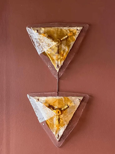 Coppia di lampade da parete in vetro di Murano trasparente e arancione di La Murrina, anni '80