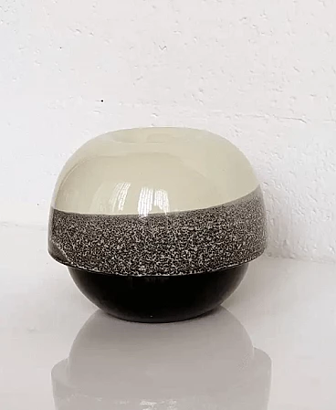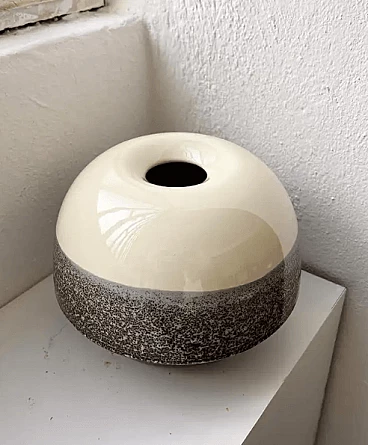 Vaso in ceramica bianca crema e marrone dipinta a mano, anni '70