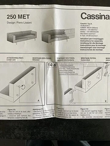 Bellissimo divano angolare serie Met 250, da 275x275 cm, disegnato dal grande e poliedrico Piero Lissoni. In condizioni generali ottime con minimi segni di utilizzo. Un ampio divano tenuto sempre coperto ogni fine vacanza, dalla polvere e dalla luce. Si presenta molto bene. Usato per una seconda casa delle vacanze. Le dimensioni sono 274x274 cm, larghezza 85 cm e superficie di seduta 60 cm. È rivestito in morbido tessuto in tre tonalità grigio/marrone/crema. Il prezzo del nuovo è di di 14000 euro. Rivestimento sfoderabile. La struttura interna è in acciaio e l'imbottitura è in poliuretano espanso senza FCCW a densità differenziata e doppia imbottitura in poliestere. I piedi sono in alluminio pressofuso lucidato.