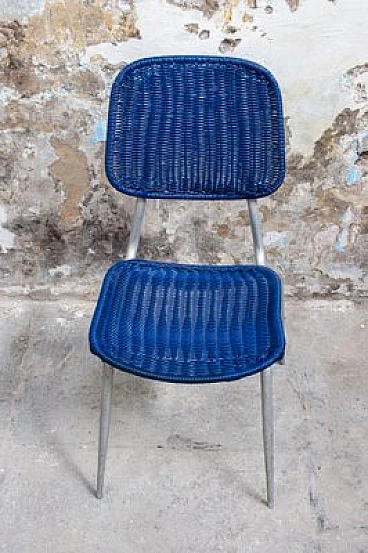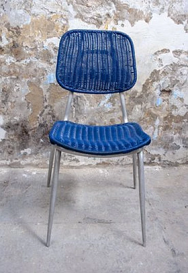 4 Sedie da pranzo in alluminio e plastica blu, anni '50