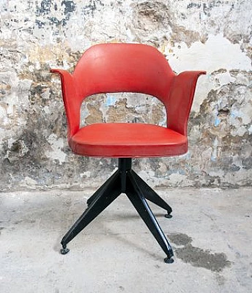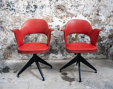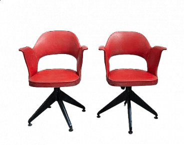 Coppia di Sedie girevoli in ferro e vinile, anni '50