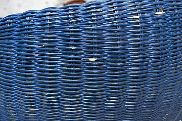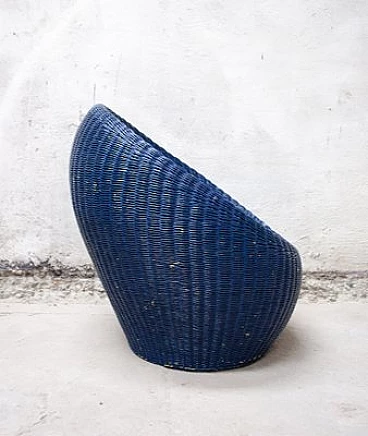 Poltrona blu in vimini. Produzione italiana, anni '60.