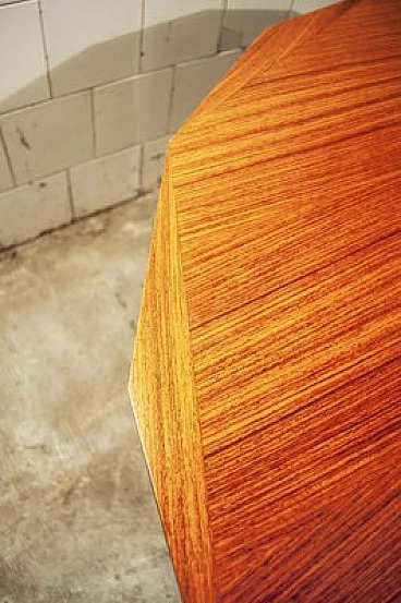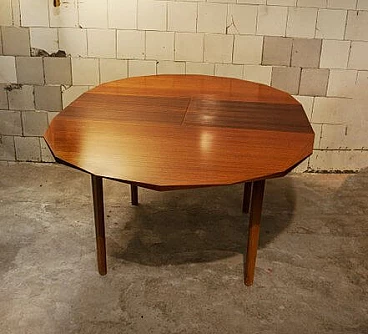 Tavolo da pranzo allungabile in noce e palissandro. Produzione italiana, anni '60.
