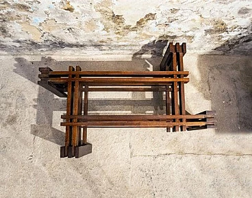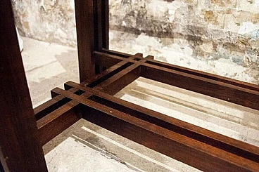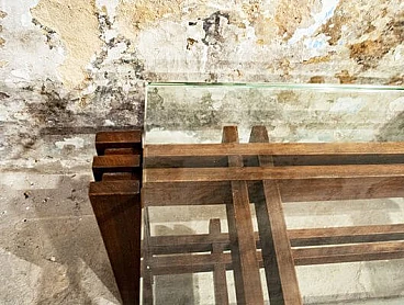 Tavolino con base in legno e ripiano in vetro, anni '50