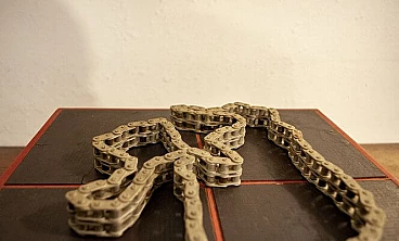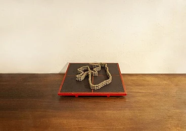 Paolo Tilche, scultura di catena magnetizzata su legno, anni '70