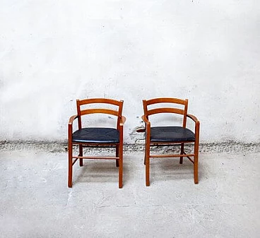 Coppia di Sedie Marocca in faggio e pelle di Vico Magistretti per ICF De Padova, 1987