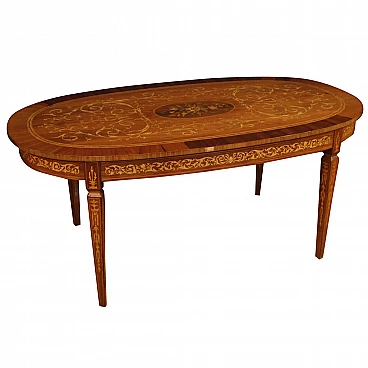 Tavolo ovale italiano intarsiato in stile Luigi XVI